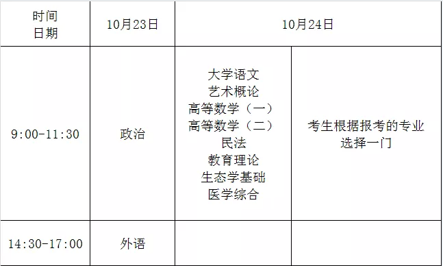 ④文化課考試時間: