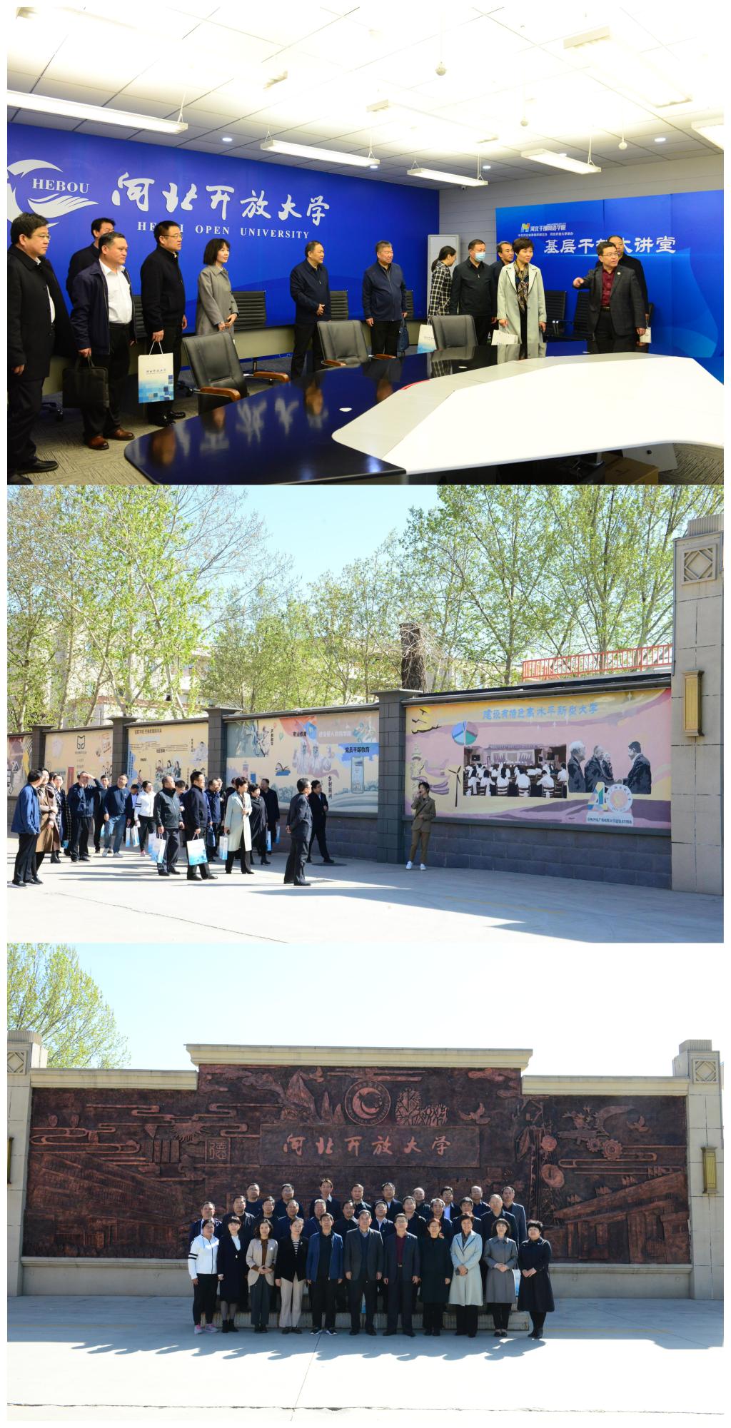 會上還討論了關于成立河北開放大學體系校務委員會相關事宜和省市縣一體化的辦學職責分工。對河北開放大學視覺識別系統進行了宣傳培訓。參觀了河北開放大學雙向視頻會議室、終身學習體驗廳、網課直播間、智慧教室、校史文化墻等。