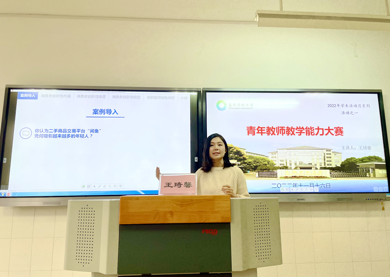 作為我校2022年學術活動月系列內容之一,由財經與管理學院承辦的《青年教師教學能力大賽指導》,于11月16日在會計實訓教室隆重舉行。本次活動邀請到了江蘇開放大學商學院的王琦馨老師,為老師們分享青年教師參賽的感悟。
