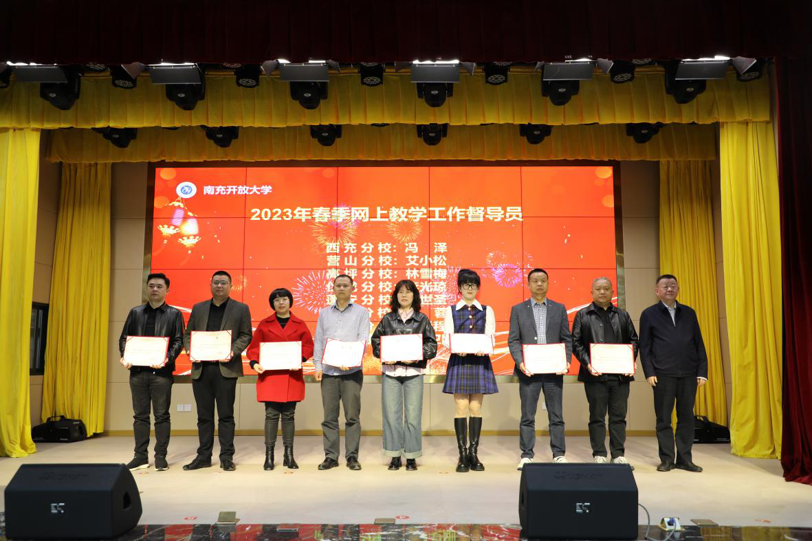 會議還表揚了2022年秋季“網上教學優秀組織者”“優秀課程輔導教師”,為馮澤、艾小松、林雪梅、李光瓊、呂世圣、李蓉、李遠程、肖衛剛等8位縣級分校網上教學工作督導員頒發了聘書。參會人員還集體觀看了三個專題片:普通話水平測試站、職能技能等級認定中心和“實干成就夢想,奮斗鑄就輝煌”。
