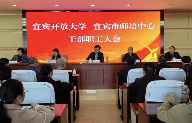 3月30日下午,宜賓開放大學(市師培中心)召開干部職工大會。市委常委、市政府副市長李翔,市委教育工委委員、市教育體育局黨組成員、副局長向慶明,市委組織部干部三科科長易丹出席會議并宣布市委、市政府任免文件,姜波同志任宜賓開放大學(市師培中心)黨委副書記、校長(主任)。受學校黨委書記蘭亞賓委托,黨委委員、副校長陳林主持會議。