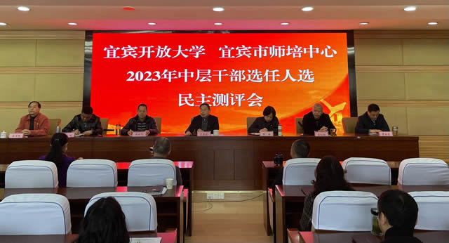 3月27日上午,宜賓開放大學(市師培中心)召開2023年中層干部選任推薦人選民主測評會。學校黨委書記、校長蘭亞賓主持會議。
