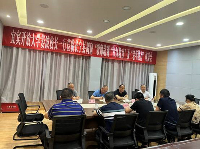 4月18日,宜賓開放大學(市師訓中心)黨委副書記、校長姜波一行到長寧縣教育研究與教師發展中心(長寧分校)調研“教師培訓”“社區教育”及“老年教育”工作。縣委組織部、縣教體局、縣師訓中心有關同志和宜賓開放大學黨政辦、教師發展部、社區教育部負責同志參加調研座談會。
