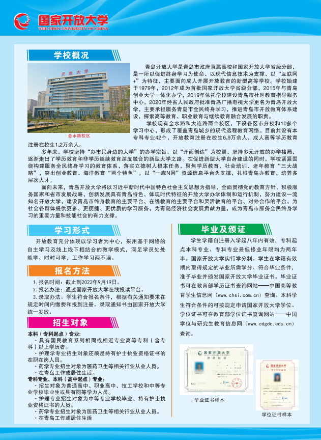 青島開放大學(膠州分校)2022年秋季開放教育招生簡章