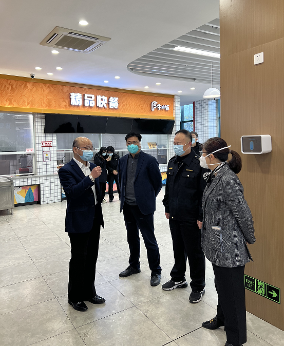 12月16日,椒江區委副書記謝煥來校視察食堂食品安全情況。校黨委書記王煥斌、副校長李滄粟,椒江區市場監督管理局等有關部門負責人陪同視察。