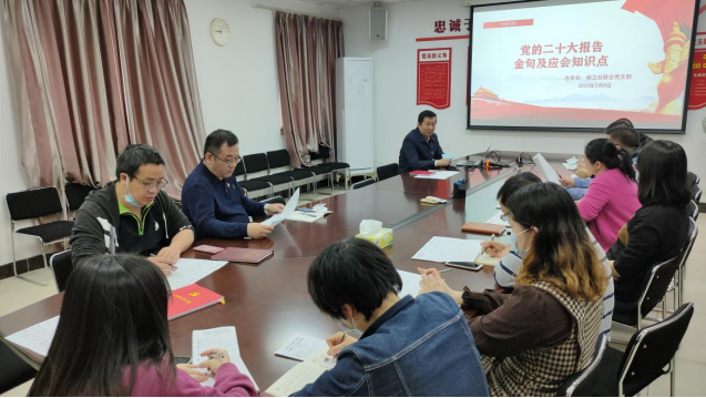 在上午的專題黨課中,支部副書記黃勇為全體黨員講解了黨的二十大報告金句及應會知識點,通過原原本本、逐字逐句學習黨的二十大報告和黨章,學習習近平總書記在黨的二十屆一中全會上的重要講話精神,全體支部黨員全面準確領會黨的二十大精神。