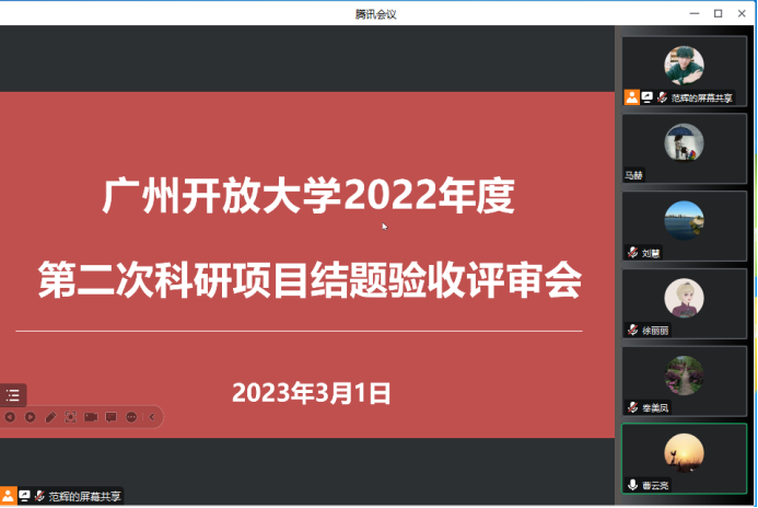 3月1日,我校召開2022年度第二次科研項目結題驗收評審會。會議采用騰訊會議在線答辯評審形式,廣州大學、番禺職業技術學院、廣東開放大學、仲愷農業工程學院等5位專家出席會議。項目負責人及其骨干成員等19人參加會議。