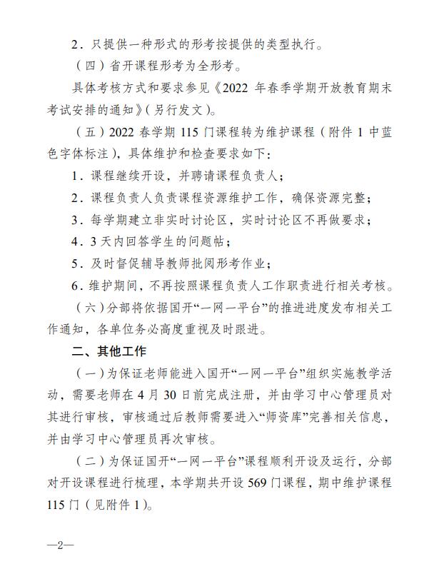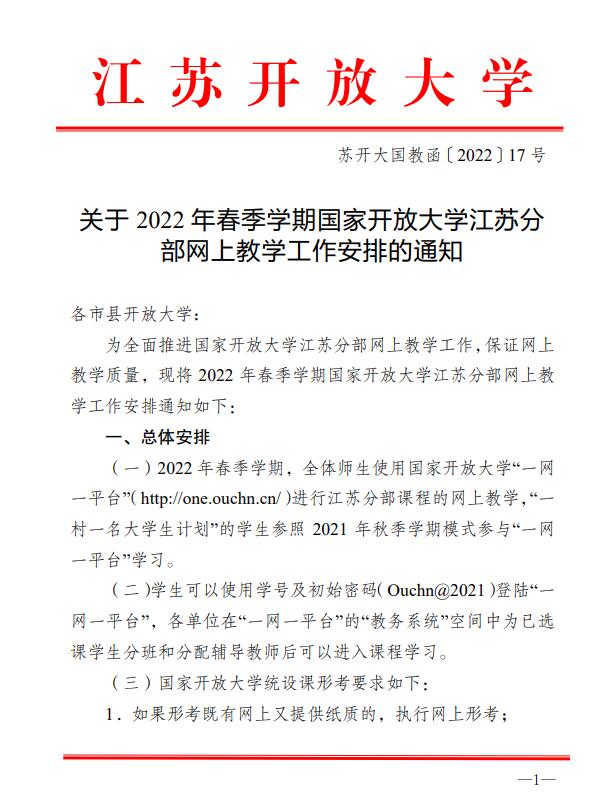 關于2022年春季學期國家開放大學江蘇分部網上教學工作安排的通知
