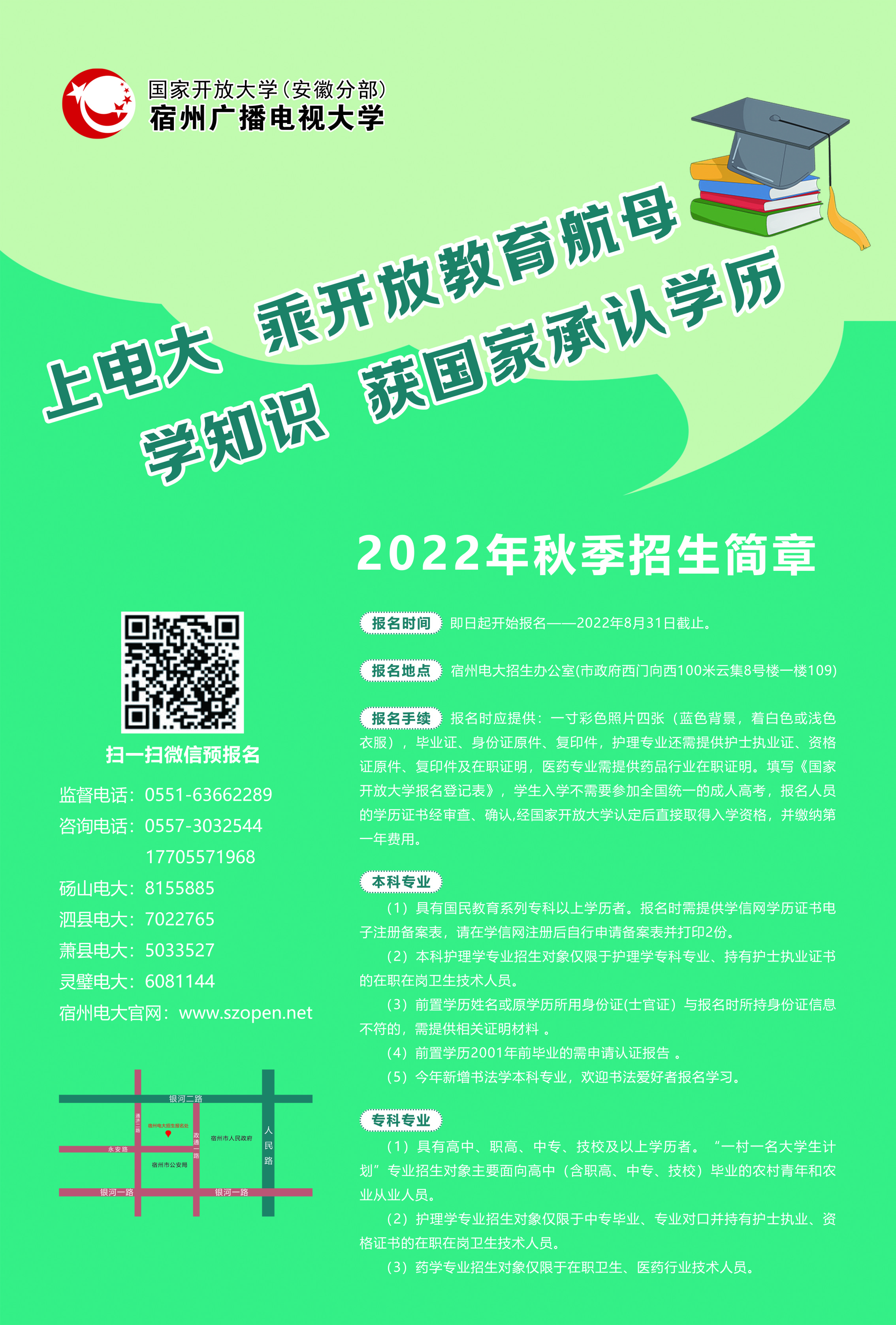 宿州開放大學(蕭縣分校)2022年秋季招生簡章