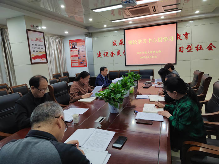 4月12日,池州開放大學召開理論學習中心組學習會議。黨支部書記、校長吳洪濤主持會議并講話,中心組成員參加,各處室負責人、團委列席會議。