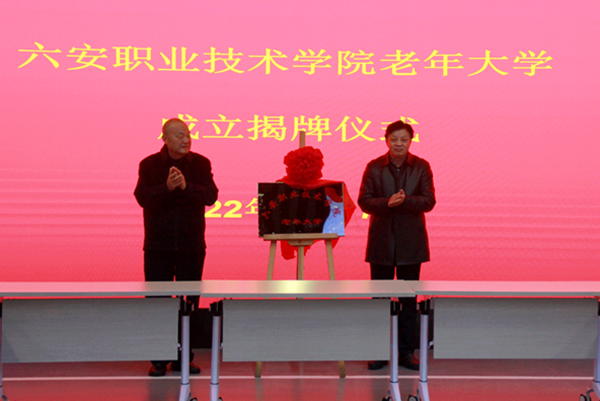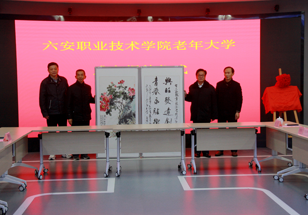 儀式上,張志剛宣讀了《六安職業技術學院舉辦老年大學工作方案》;六安老年大學向我校贈送了字畫。
