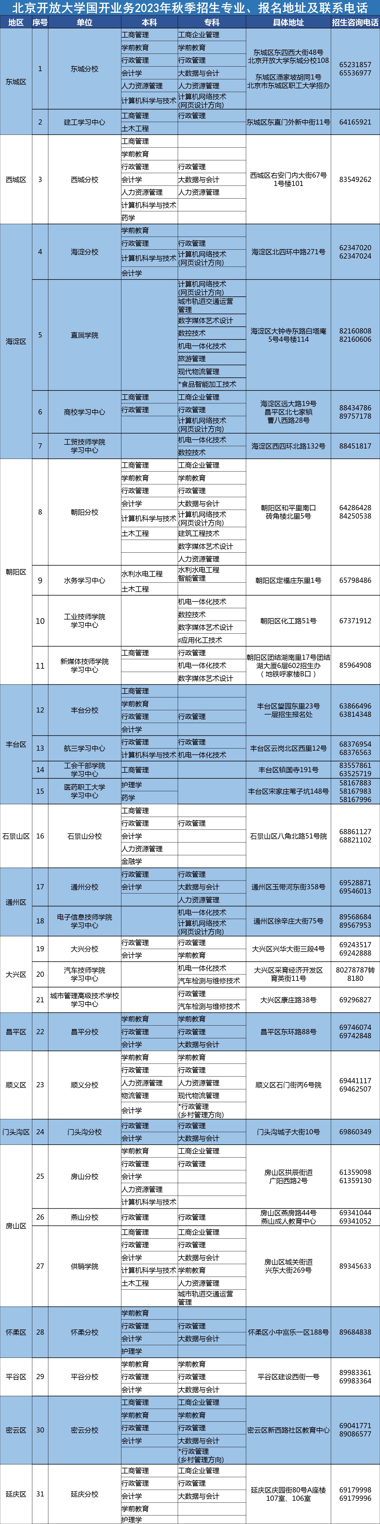 國家開放大學(北京)分部2023年秋季招生專業、報名地址及聯系電話