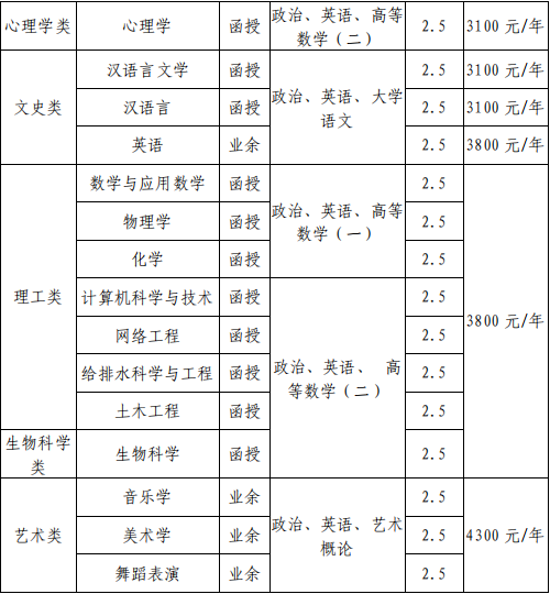 二、招生專業、層次、學習形式、統考科目、修業年限、學費