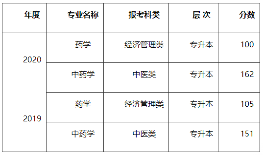 山西藥科職業學院歷年成人高考錄取分數線