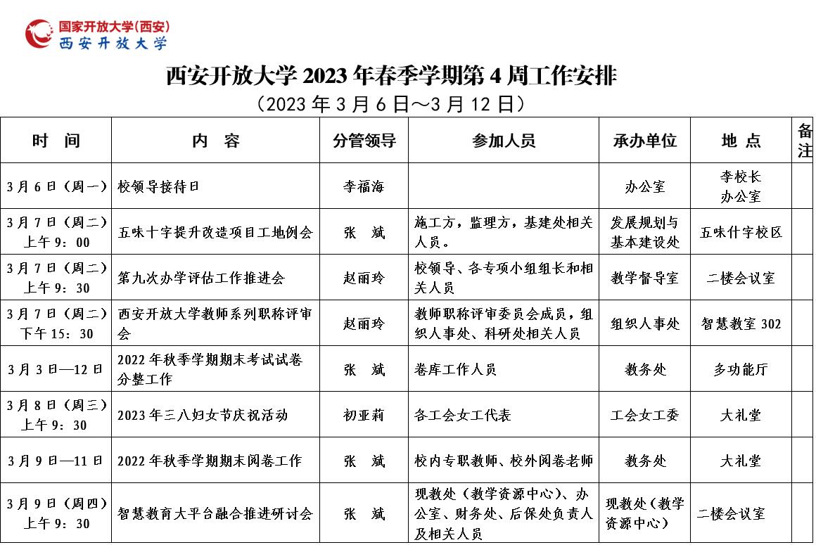 西安開放大學2023年春季學期第4周工作安排