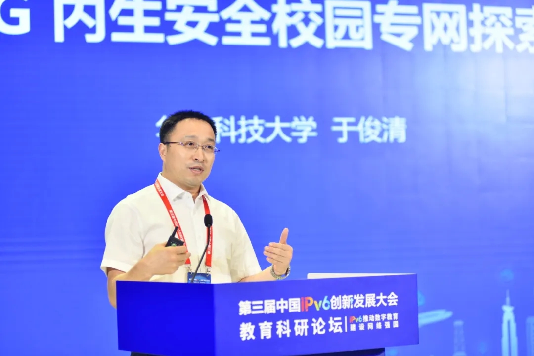 于俊清表示,IPv6+5G發展迅速,支撐著未來互聯網基礎設施建設。他結合華中科技大學校園網絡建設實踐,基于Wi-Fi建設、校外訪問、安全防護等問題與挑戰,提出了IPv6+5G內生安全校園專網的建設思路。