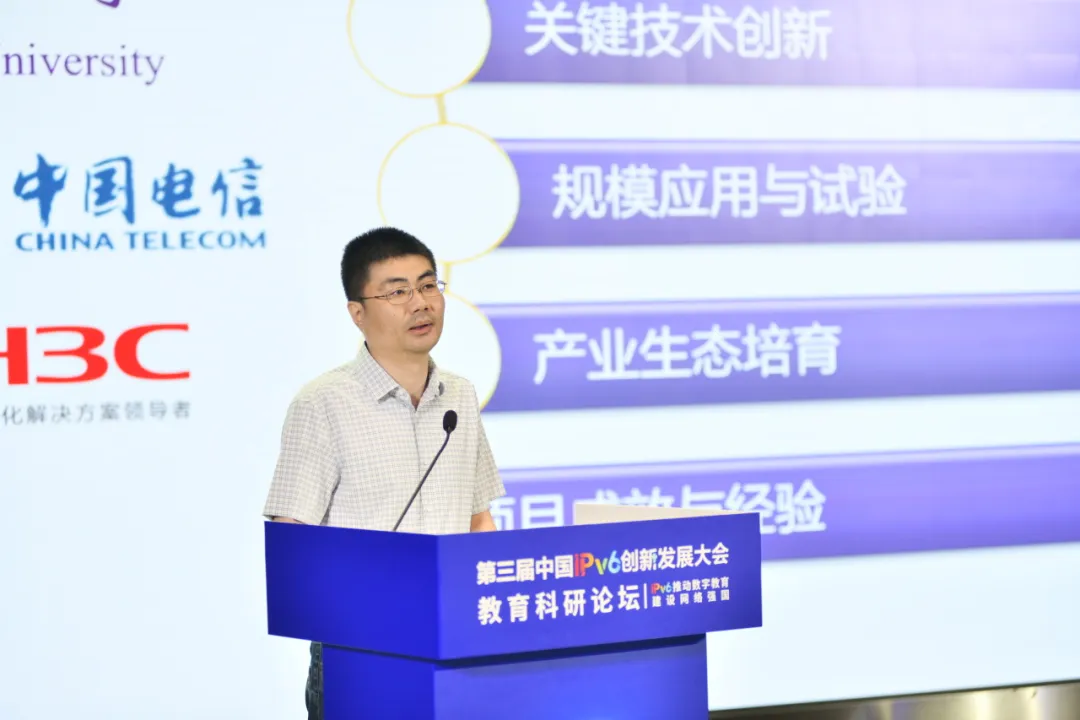 7月7日,第三屆中國IPv6創新發展大會教育科研論壇在北京舉行。論壇以“IPv6推動數字教育,建設網絡強國”為主題,由推進IPv6規模部署和應用專家委員會主辦,中國教育和科研計算機網CERNET網絡中心、賽爾網絡承辦,推進IPv6規模部署和應用專家委員會教育行業委員會、中國互聯網協會學術工委會協辦。來自教育部、高校、科研機構及企業的領導和專家齊聚一堂,共同探討教育科研領域IPv6下一代互聯網技術應用創新與發展。