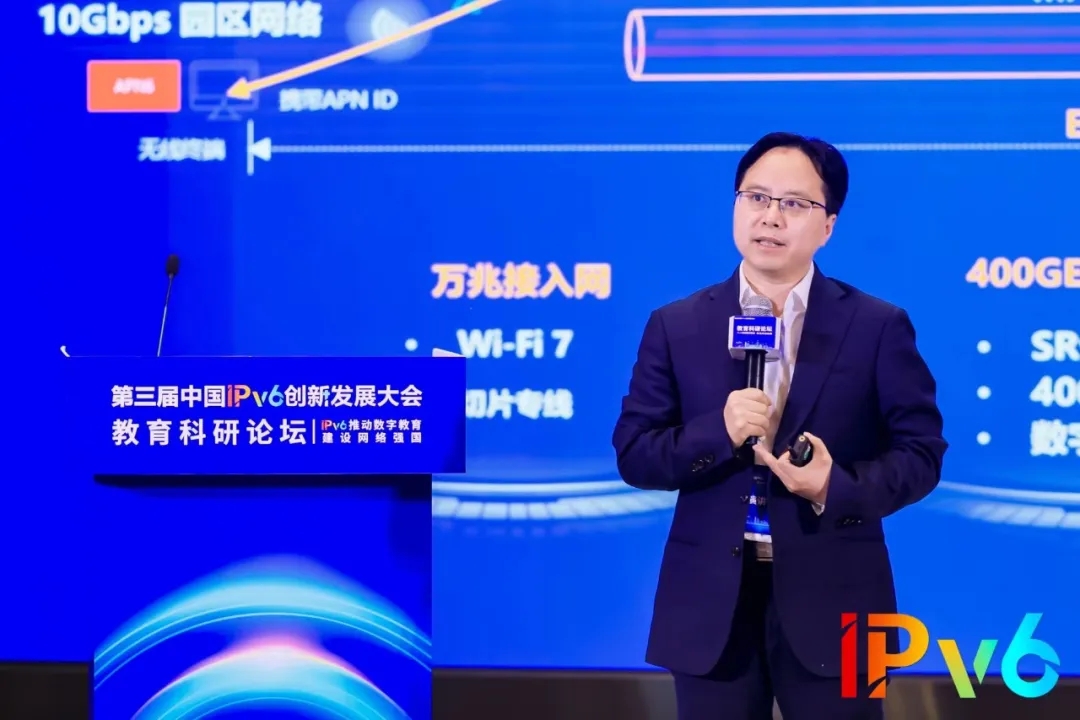 伍連和分享了在IPv6+深度創新下夯實智慧教育網絡新底座的策略。他表示,IPv6+創新技術助力教育云網向教育算網升級。