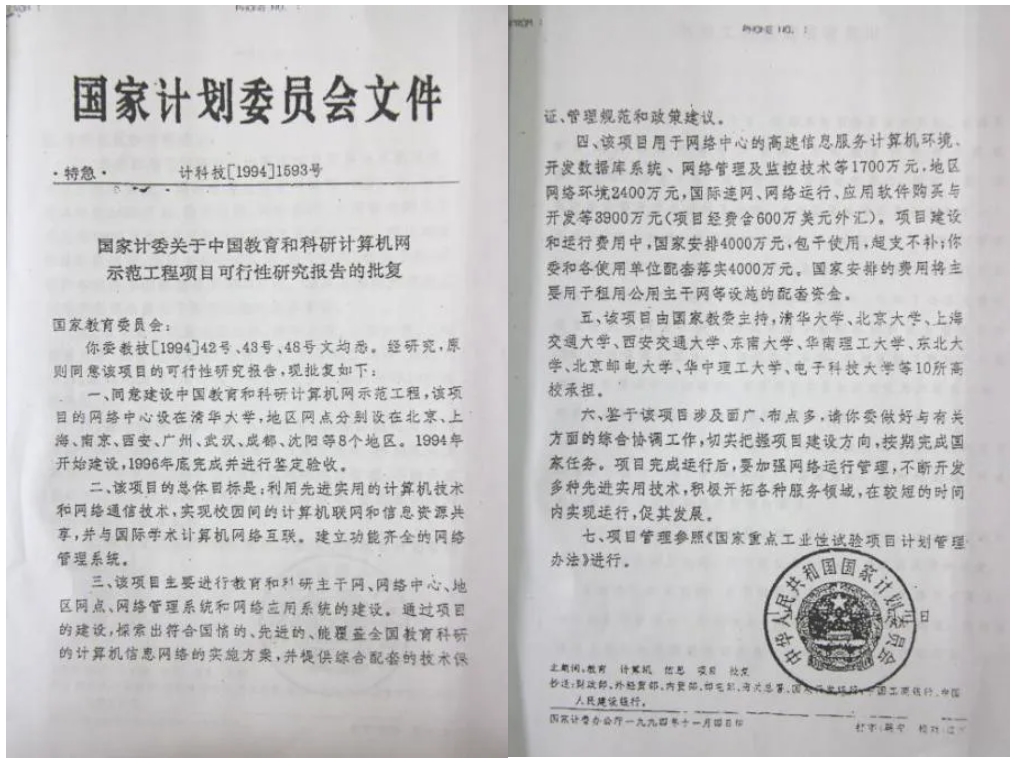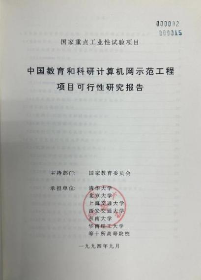9月,在國家教委主持下,200多頁的《中國教育和科研計算機網示范工程項目可行性研究報告》通過了由葉培大院士為首的專家委員會的論證,并由國家教委正式上報國家計委申請立項。這是我國高等教育與科研領域在網絡建設方面描繪的最初藍圖。