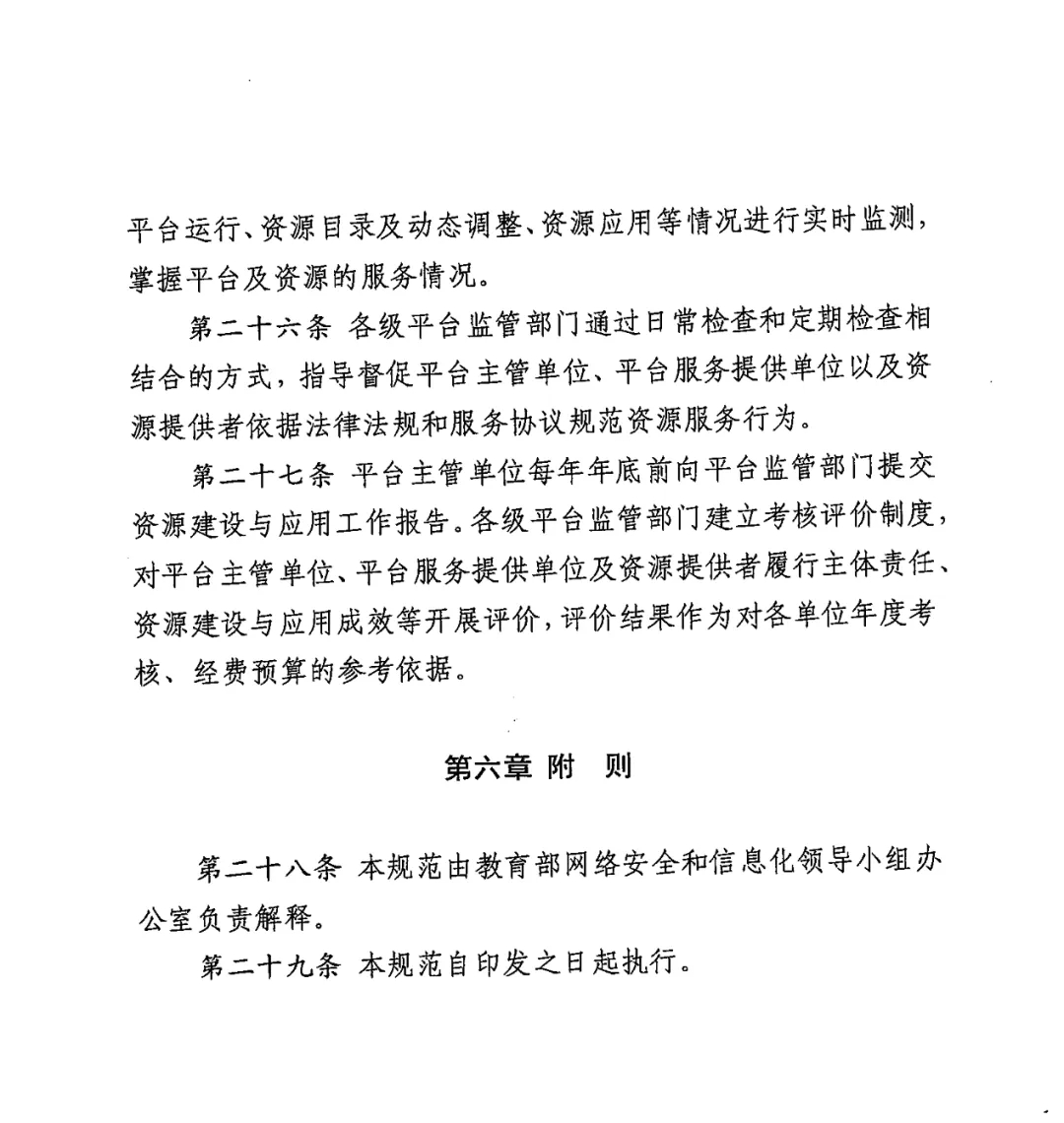 《規范》明確了國家智慧教育平臺數字教育資源入庫出庫的工作職責、入庫管理、出庫管理、監督評價等二十九條相關規定,旨在豐富國家智慧教育平臺數字教育資源供給,提升資源質量,實現對資源的動態更新調整,滿足師生和社會公眾對優質數字教育資源的需求。