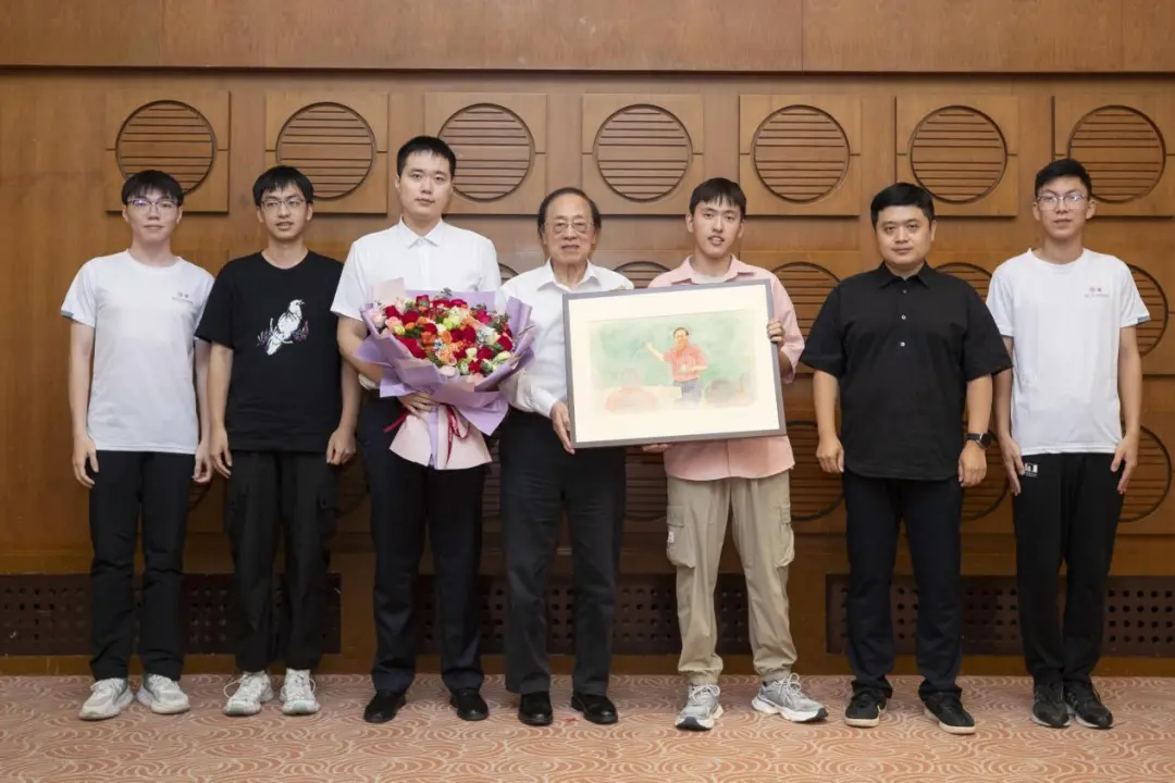 座談會上,學生代表為姚期智先生獻花并贈送畫作。