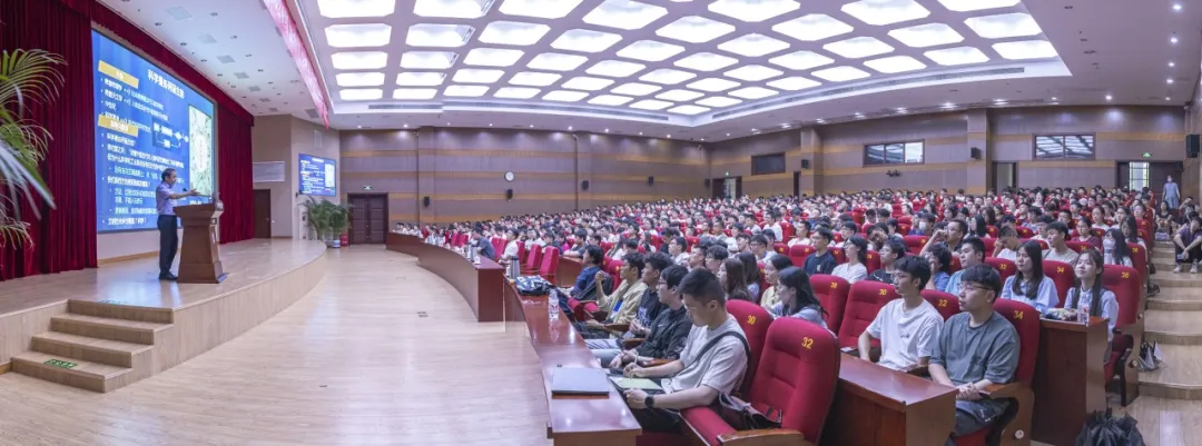 500余名國科大2024級集中教學新生在主會場聆聽報告,各院系和培養單位通過線上分會場集中觀看。國科大黨委常委、副校長金德鵬出席報告會。