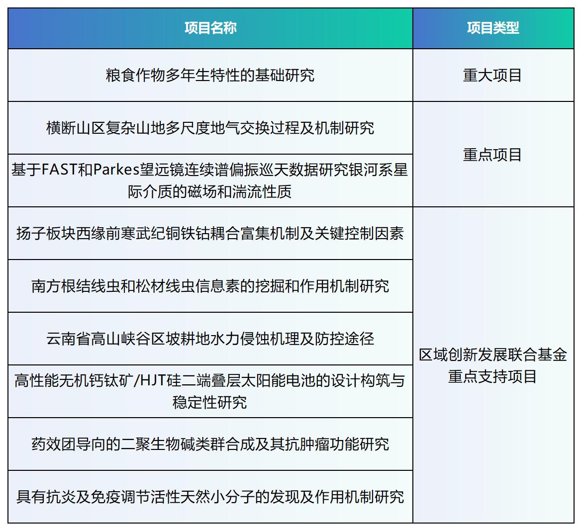 云南大學2024年獲國家自然科學基金重大重點類項目列表