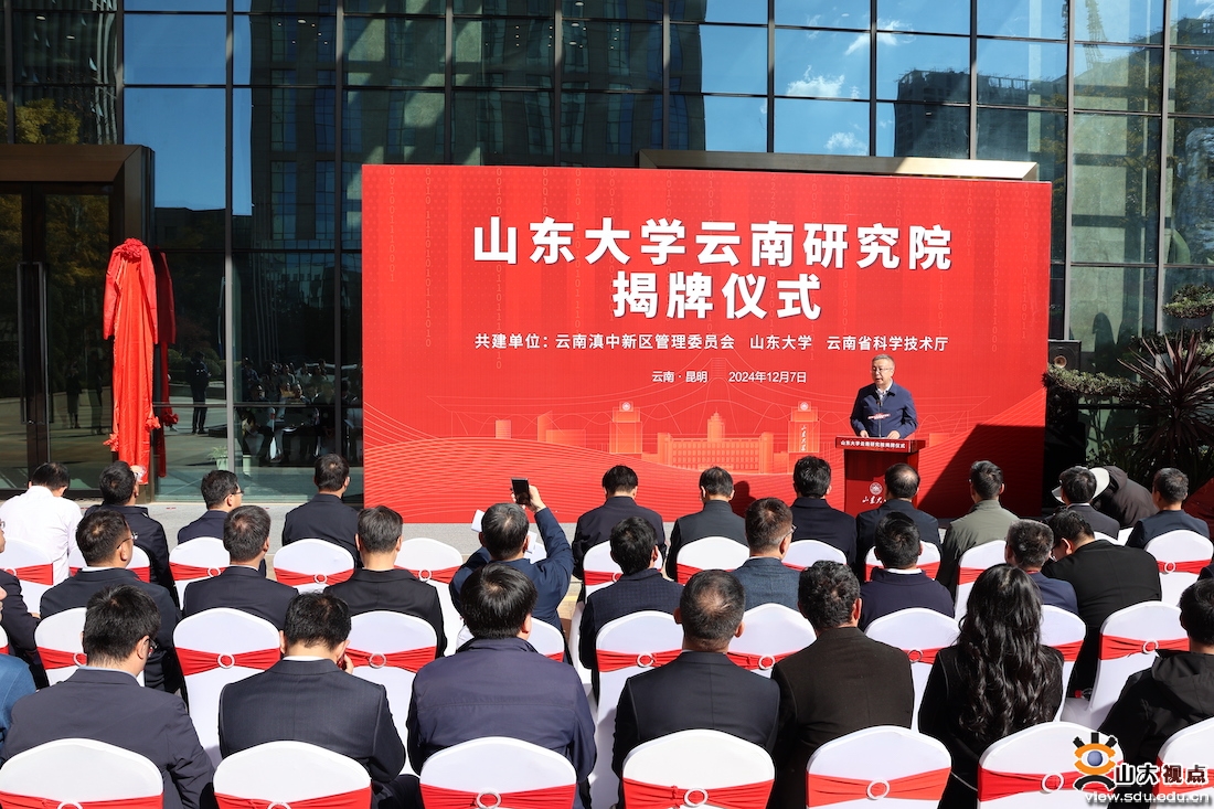 12月7日下午,山東大學云南研究院揭牌儀式在昆明市滇中新區舉行。校黨委書記任友群、校長李術才,昆明市委副書記、市長劉佳晨,云南滇中新區管委會黨工委副書記、管委會副主任楊東偉出席儀式。李術才主持儀式。