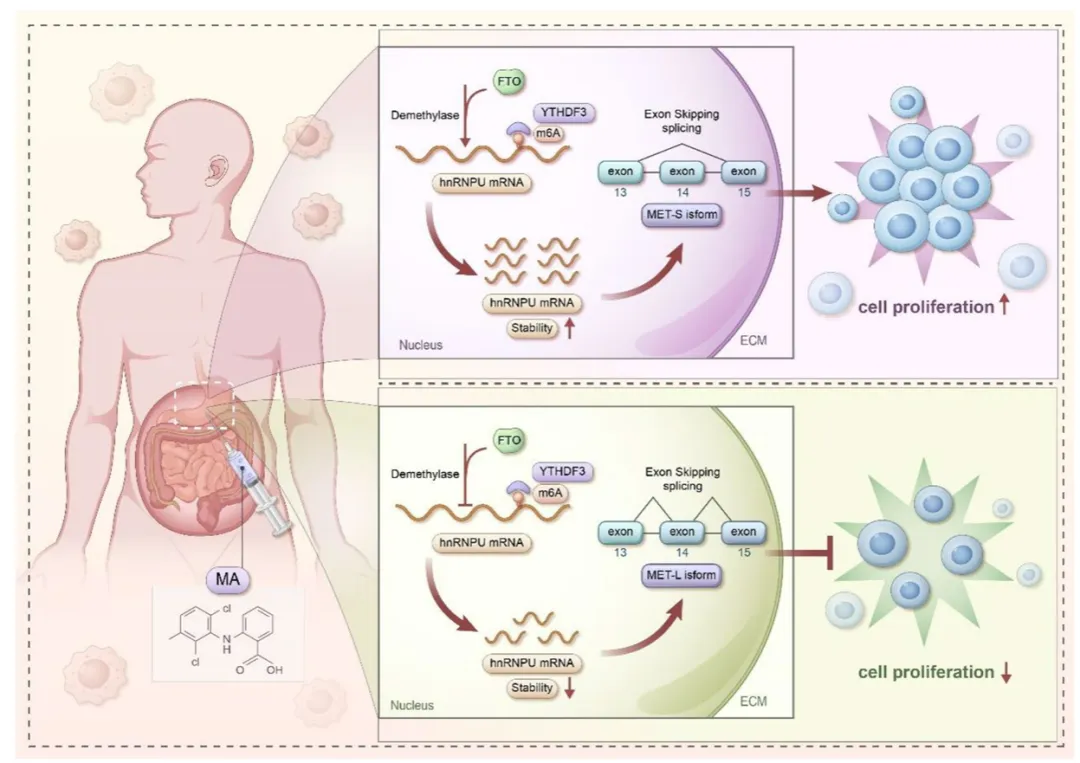 機制圖:FTO通過調節HNRNPU的甲基化水平影響MET的可變剪切促進胃癌的發生