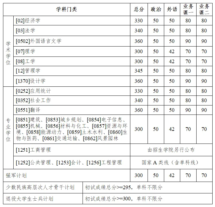 哈爾濱工業大學2025年碩士研究生招生考試復試基本線