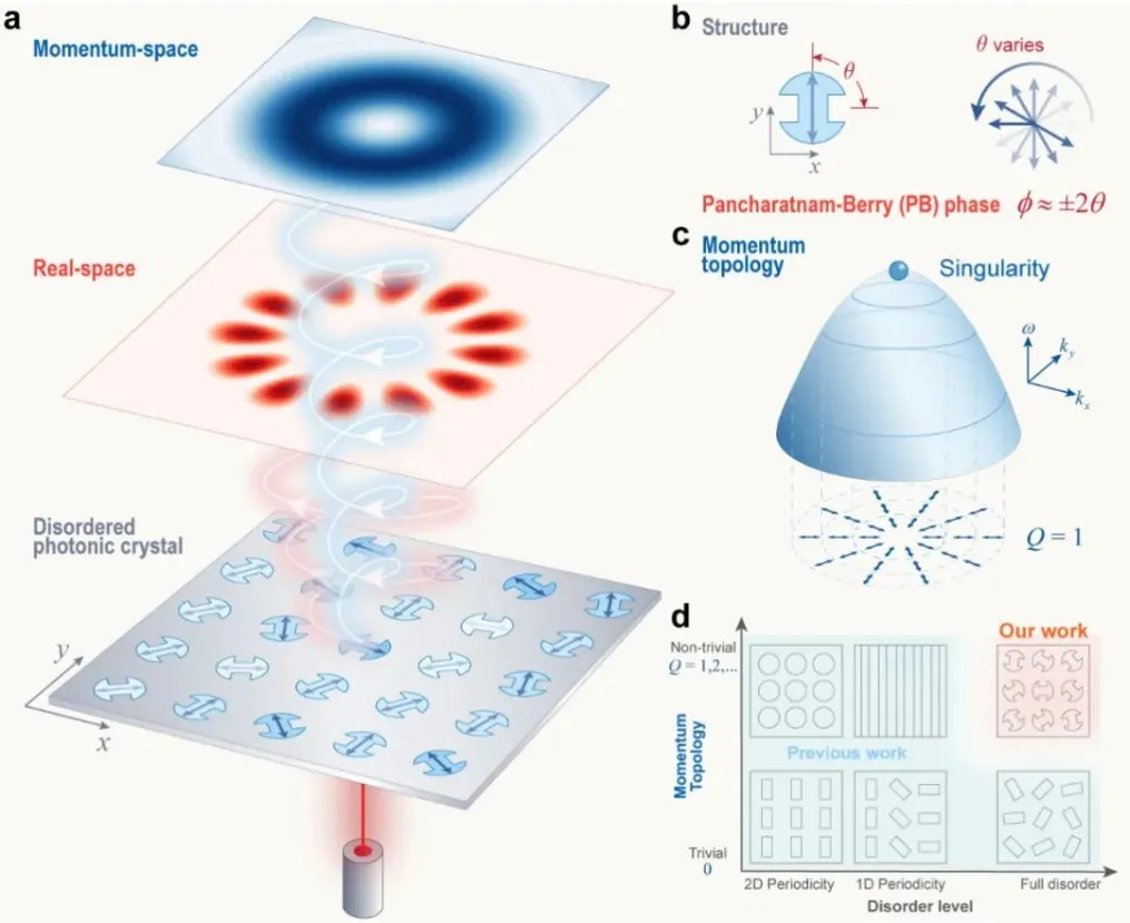 在連續域束縛態(BIC)中引入有效的無序信息而不破壞BIC的拓撲特性是拓撲光學領域中的一個重要挑戰。為了解決這一問題,宋清華團隊聯合新加坡國立大學教授仇成偉、洛桑聯邦理工大學教授羅曼·弗勒里(Romain Fleury)首次提出了一種實動量拓撲光子晶體的概念,該研究提出了無序輔助的實動量拓撲光子晶體,為拓撲光學領域的應用開辟了新的方向。這一創新性研究,有望推動光子芯片等微納光學器件的發展,并可應用于高穩定性高容量的光通信技術、高維量子糾纏技術、生物粒子的精細光學操控等多個領域。