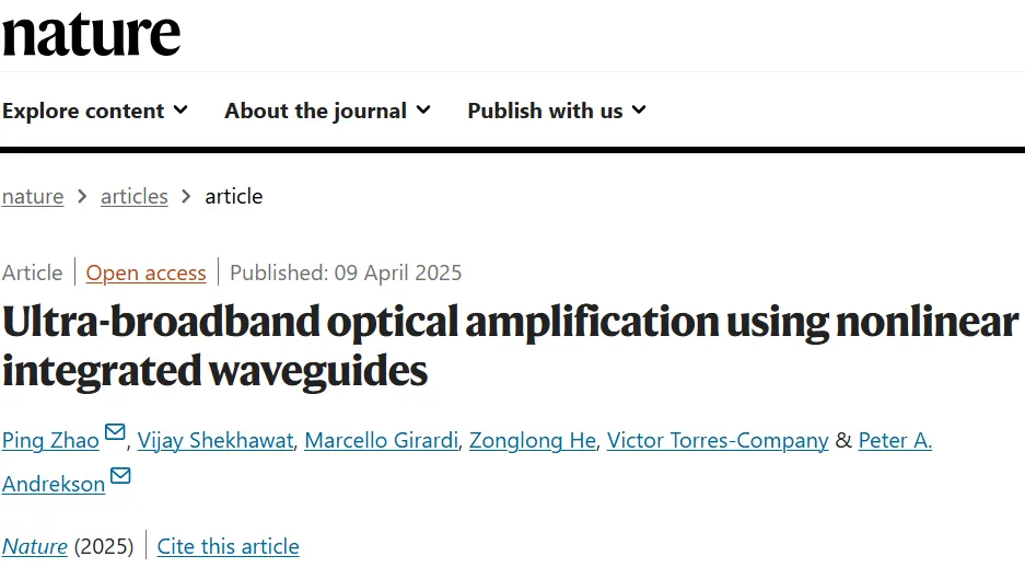 近日,四川大學電子信息學院趙平團隊聯合瑞典查爾姆斯理工大學Peter Andrekson教授團隊,在光放大器制備領域取得重要進展。相關研究以Ultra-broadband optical amplification using nonlinear integrated waveguides為題發表于Nature。四川大學趙平研究員為論文第一作者。