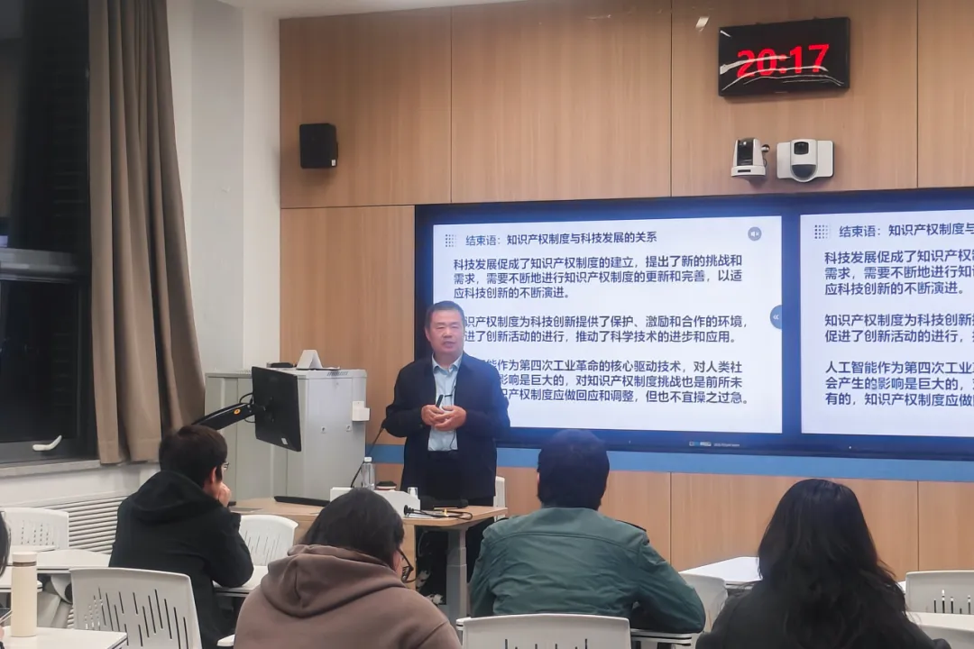 知識產權宣傳周的首場專題講座,由知識產權學院副院長閆文軍于4月21日晚在雁棲湖校區開講。他回應了今年全國知識產權宣傳周的主題,以“人工智能對知識產權的六大挑戰”為題,從知識產權主體、著作權以及專利三個方面進行剖析,并結合各國案例和中國的司法實踐進行對比,針對人工智能引發的知識產權之問,給同學們提供方案參考。