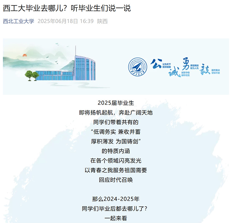 近日,西北工業大學大學官微公布2025屆畢業生就業數據。