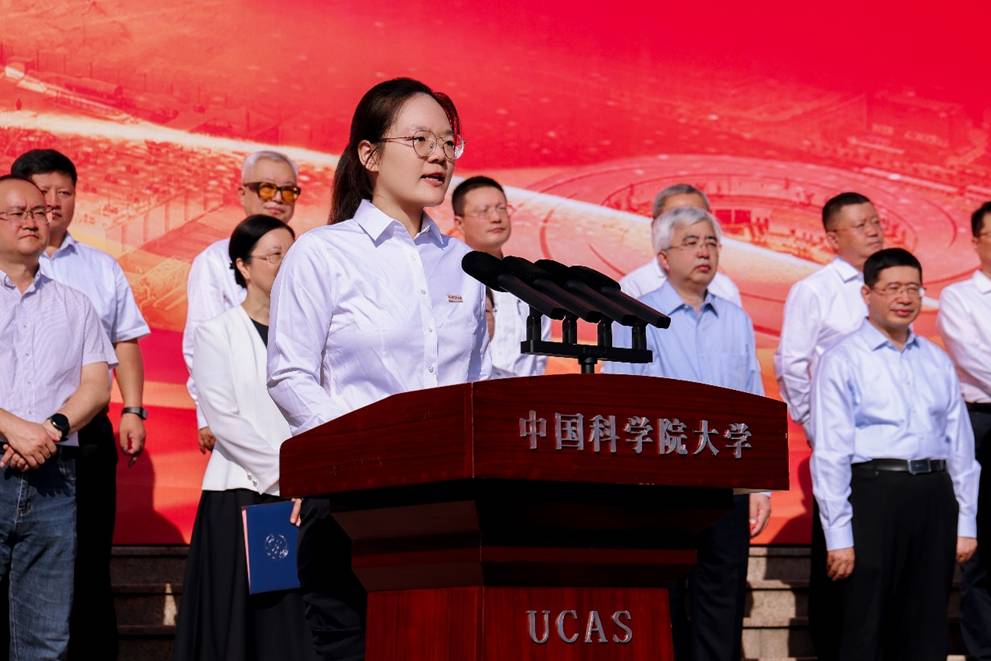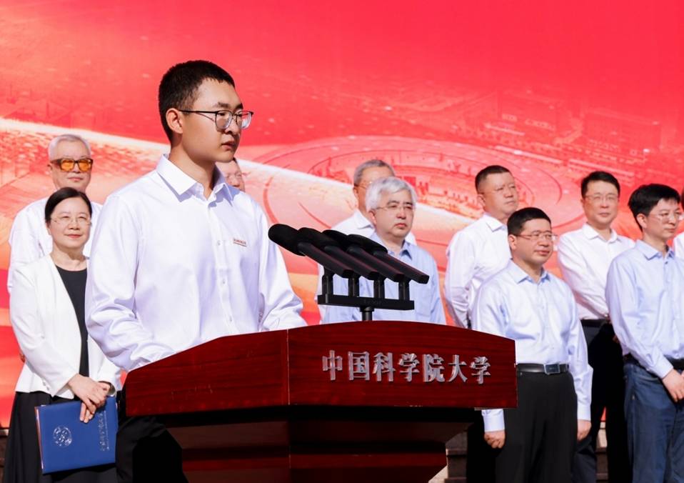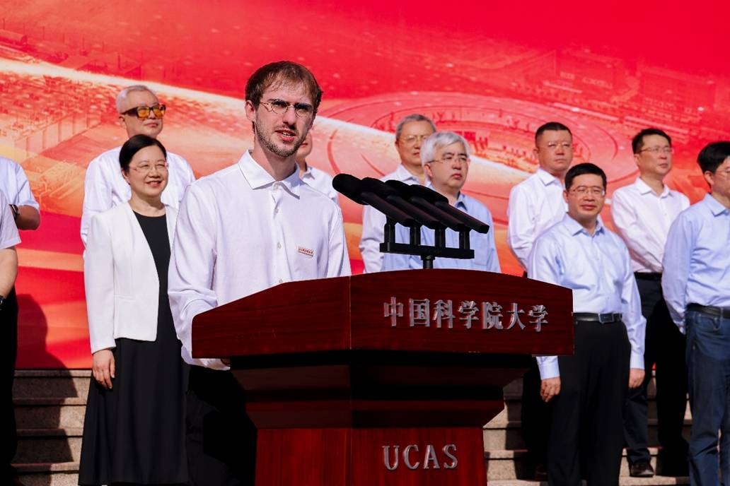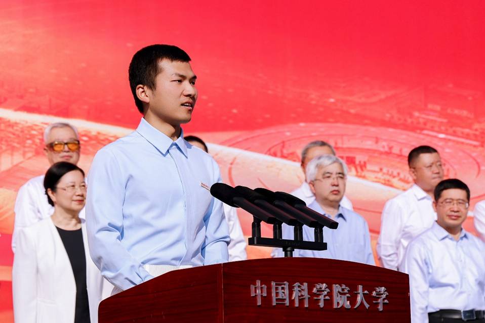周琪發表題為“銘記歷史 開創未來”的致辭。他以70年前正式頒布《中國科學院研究生暫行條例》為例,介紹了中國科學院科教融合的育人傳統,以及國科大正在探索的自主人才培養模式;以60年前科學家建議開展人造衛星研制和世界上首次成功人工合成牛胰島素為例,講述了錢學森、趙九章等老先生們集智攻關、科技報國的精神傳承;以50年前中國科學院與德國馬普學會簽署合作協議為例,強調國際交流的本質是人與人的交流,希望同學們和留學生同學攜手并進,深刻理解并踐行“人類命運共同體”理念。他勉勵新生從學校的奮斗史中汲取力量,以前輩為榜樣,賡續“兩彈一星”精神,讀懂國科大人的使命,立足實際,解決國家最迫切需要解決的根本性難題。