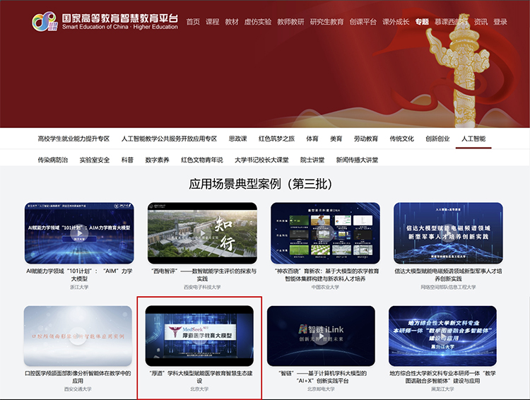國家智慧教育平臺上發布第三批“人工智能+高等教育”應用場景典型案例