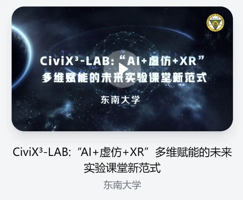 近日,教育部公布第三批“人工智能+高等教育”應用場景典型案例名單,東南大學推薦的案例《CiviX3-LAB:“AI+虛仿+XR”多維賦能的未來實驗課堂新范式》成功入選(全國共30項),并在國家高等教育智慧教育平臺面向全國宣傳推廣,成為推動人工智能與教育深度融合的示范性成果。這是東南大學繼“大學物理課程智能AI助教系統”“‘實驗Talk’AI平臺賦能大電類專業基礎實驗教、學、管”入選前兩批典型案例后,再次有案例入選。全國僅有10所高校連續三批入選。