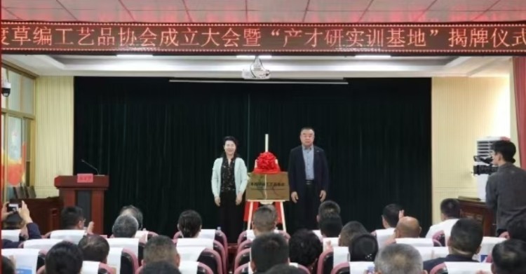 一麥一草,指尖傳承;一編一織,產學交融。2025年10月16日,平度草編工藝品協會揭牌成立暨“產才研實訓基地”授牌儀式在新河鎮隆重舉行。青島科技大學藝術學院院長李宏文、山東省非物質文化遺產研究基地·青島科技大學(以下簡稱“省非遺基地”)執行主任于瑞強受邀參加。平度市人大常委會副主任、組織部副部長、市直相關部門主要負責人、新河鎮黨政領導班子和協會成員參加,李宏文和新河鎮黨委書記付強分別致辭,大會由新河鎮鎮長劉毅主持。