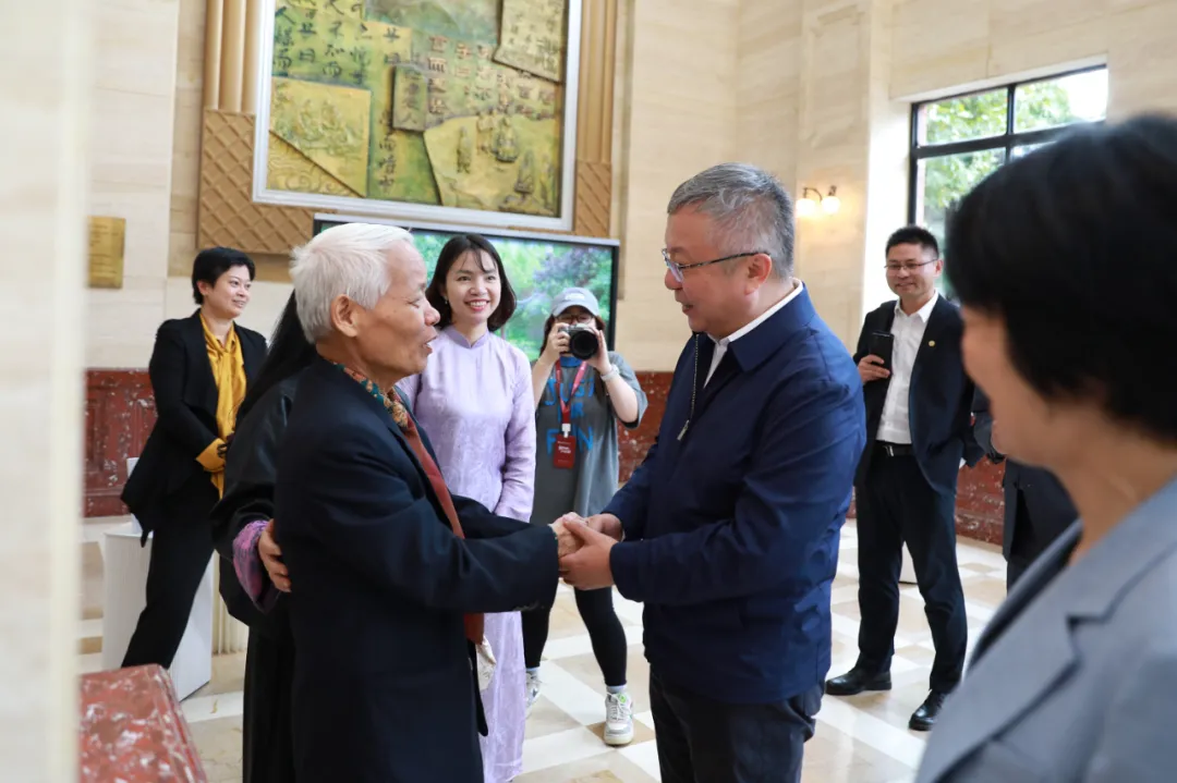 任友群和1965年首批來華學習的華東師大越南籍留學生黃茶先生親切交談