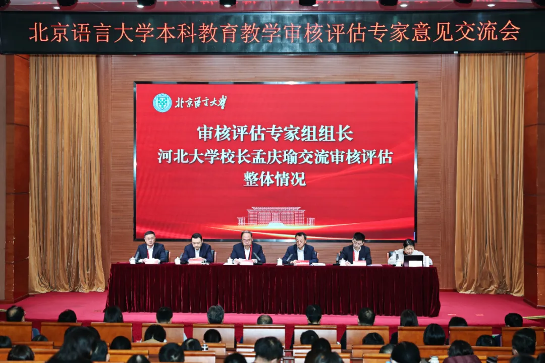 孟慶瑜代表專家組向學校反饋審核評估總體情況。專家組對學校辦學成效給予高度評價,一致認為北京語言大學堅持用習近平新時代中國特色社會主義思想鑄魂育人,落實立德樹人根本任務,始終牢記推動文化交流文明互鑒的初心使命,培養了一大批人類命運共同體的建設者、文明交流互鑒的推動者和具有全球競爭力的高素質國際化專業人才。學校本科教育教學工作特色鮮明、成效顯著。一是全面加強黨的領導,系統構建立德樹人新格局;二是主動探索文工復合育人新路徑,打造國內首個“語言+工程”跨校聯合學士學位培養項目集群;三是堅持模式創新,實施中外同堂、本碩博貫通的卓越人才培養;四是引領中文教育標準建設,打造國際中文教育標桿;五是創新中國話語和中國敘事體系,貢獻文明互鑒的北語智慧。同時,專家組結合線上評估和入校考察情況,對學校在多方協同育人機制等方面提出了建設性意見。