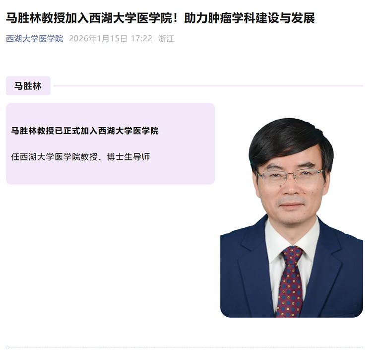 “西湖大學醫學院”微信公眾號消息,我國腫瘤治療與研究領域知名專家馬勝林教授已正式加入西湖大學醫學院,任西湖大學醫學院教授、博士生導師。