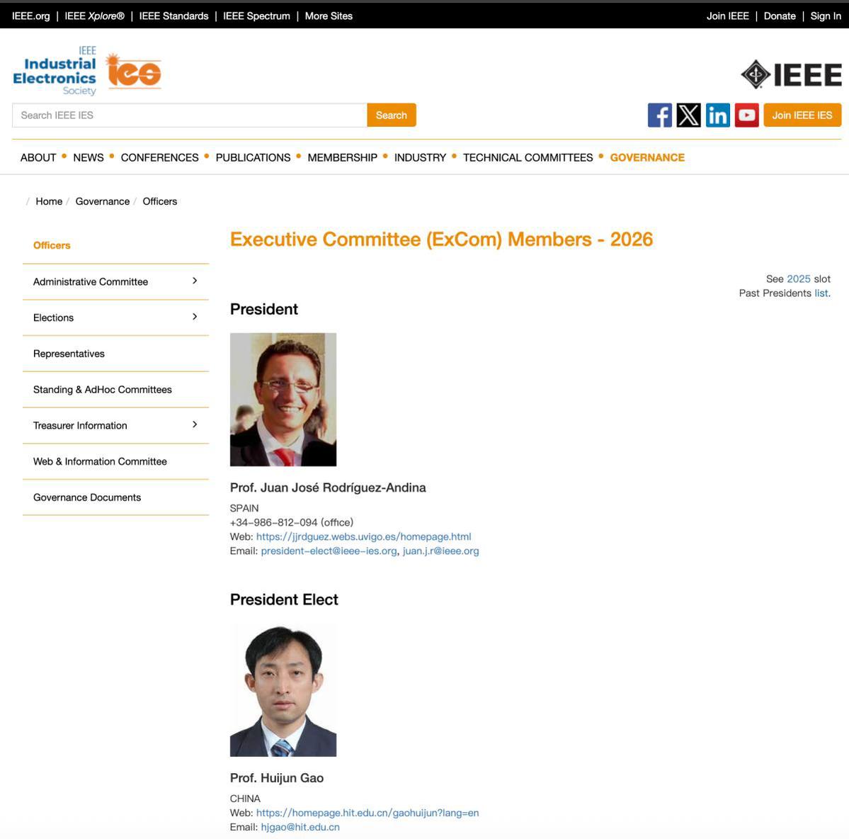 近日,美國電氣與電子工程師協會(IEEE)工業電子學會在葡萄牙里斯本召開學會執行委員會議(ExCom Meeting)。哈爾濱工業大學航天學院高會軍教授作為新當選的學會候任主席(President Elect)參加會議并作工作報告。他是該學會自1951年創會以來第一位當選主席的中國大陸學者。