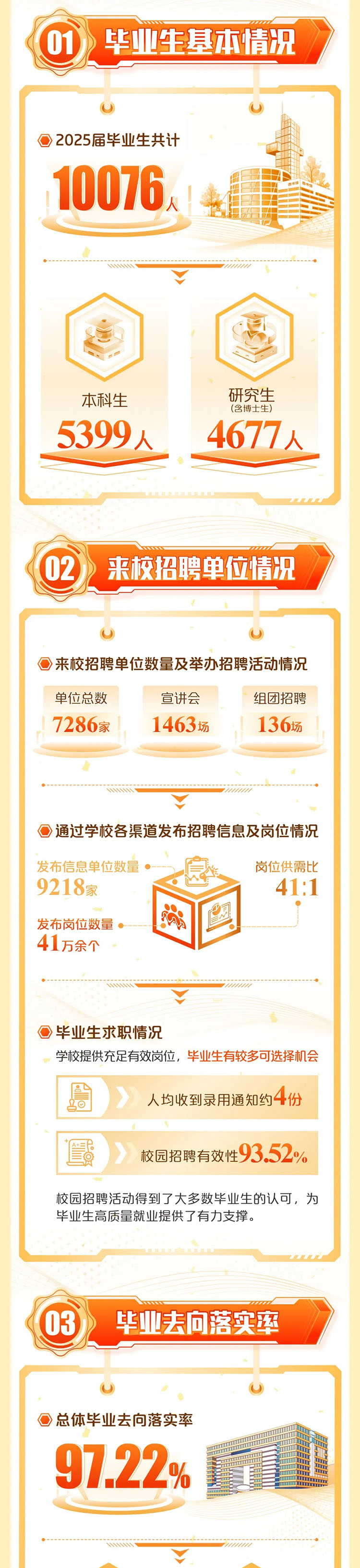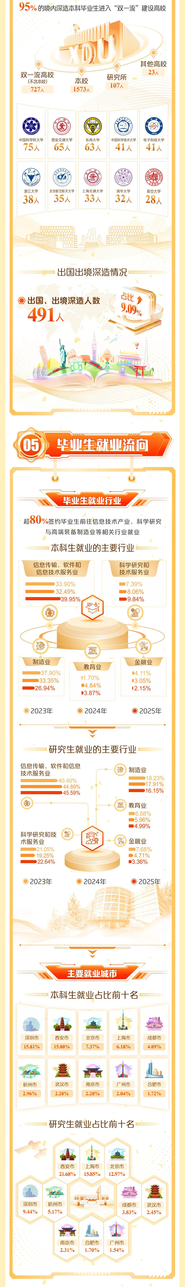 近日,西安電子科技大學發布《2025屆畢業生就業質量報告》。報告顯示,截至2025年12月,2025屆畢業生的總體畢業去向落實率為97.22%,其中本科生為98.18%、研究生96.39%。