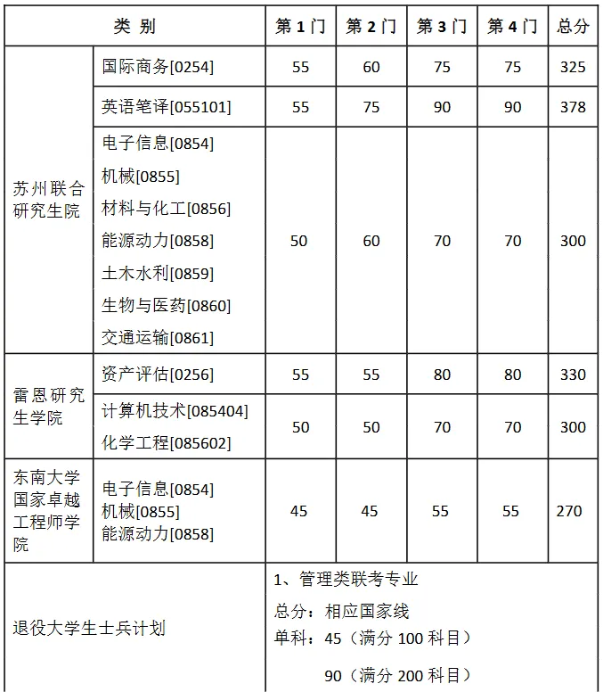 東南大學國家卓越工程師學院、退役大學生士兵計劃、少數民族高層次骨干人才計劃和強軍計劃以相應學校復試基本線為準。