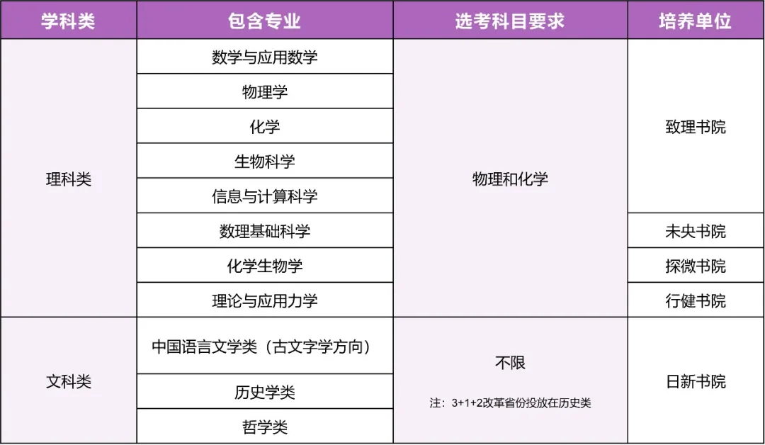 基礎文科類專業旨在選拔并培養在基礎文科領域有特長且有志于從事相關研究的學生,包括:中國語言文學類(古文字學方向)、歷史學類、哲學類專業。