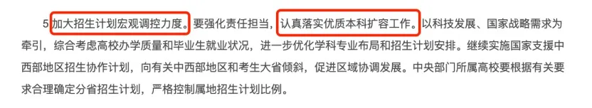 這也是落實《教育強國建設規劃綱要(2024-2035年)》的部署:有序擴大優質本科教育招生規模。
