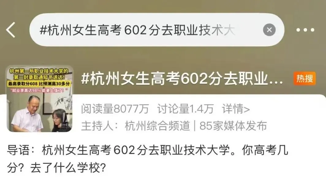 同樣是去年,杭州一位考生考了602分,沒選普通本科,反而去了浙江機電職業技術大學讀城市軌道交通設備與控制技術,相關話題直接沖上熱搜。今年鄭州鐵路職業技術學院單招,甚至要求“本科起點”,畢業發大專文憑——被網友戲稱“本升專”。