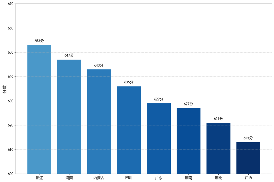 參考數據來源:廣東省教育考試院、浙江省教育考試院、湖南省教育考試院、江西省教育考試院、重慶教育考試院、廣西招生考試院、山東省教育招生考試院、內蒙古招生考試信息網、福耀科技大學本科生招生網、深圳理工大學招生網等。