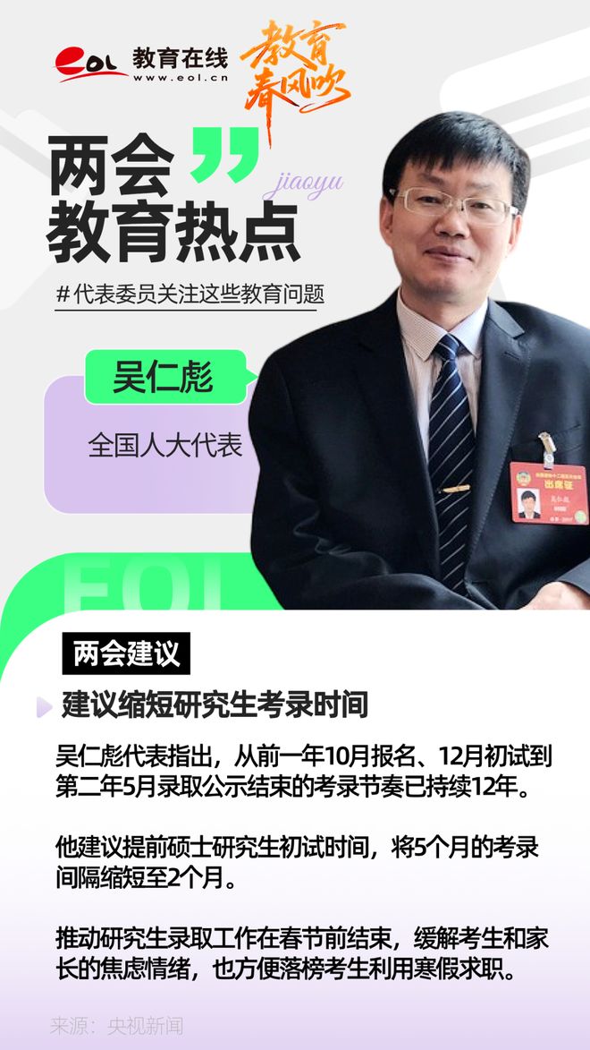 全國人大代表吳仁彪:建議縮短研究生考錄時間