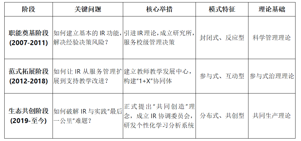 表1 文華學院“共同創造”IR模式發展階段表